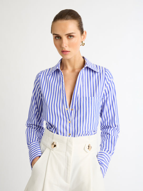The classic shirt or blouse is a workwear prerequisite. Channel office-chic and wear tucked into trousers or a skirt, or style with a pair of tailored shorts to start the week right. Opt for the oversized Stevie Shirt with timeless stripes to keep it classic or venture towards the Valencia Shirt’s vibrant paisley print and the Harlee Shirt’s lightweight decadent fabric in softer tones for a modern take. The faithful V neck Leo Linen Shirt is one to savour for warm office days, paired with coordinating shorts and Tina Heels for a polished, clean aesthetic.