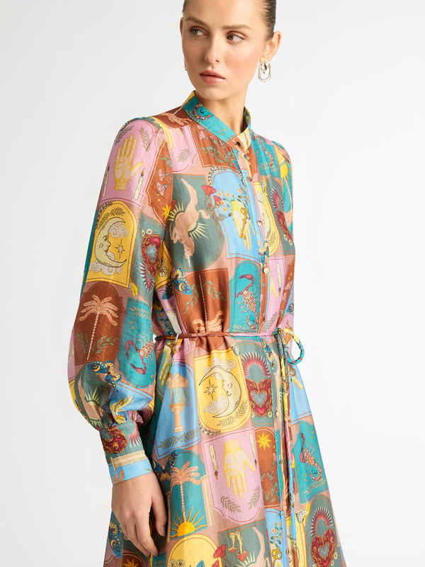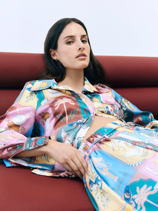 A harmonious colour palette is taken from the way the sun hits the cityscape from sunrise to sunset. We are immersed in punches of bold hues - red blends into shades of the sunset and earthy tones of sand and stone into gold. Prints are introduced in the form of stripes, easy-wearing geometric and abstract florals.