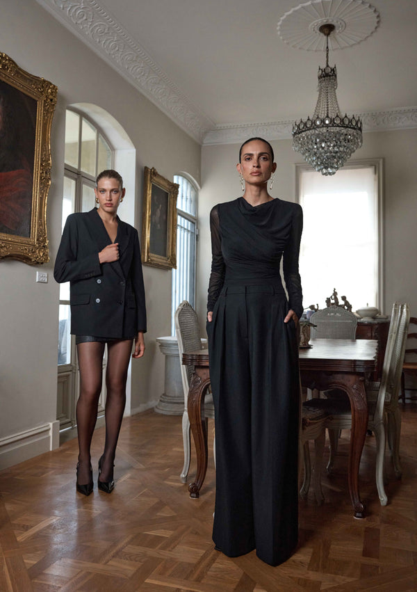 As we make our way into the winter months, don't let the cool down stop you from dressing up. A revival of dramatic proportions, cinched waists and asymmetry is found amongst the LBD, the pantsuit and the coordinating set. Heading out has never looked so good.