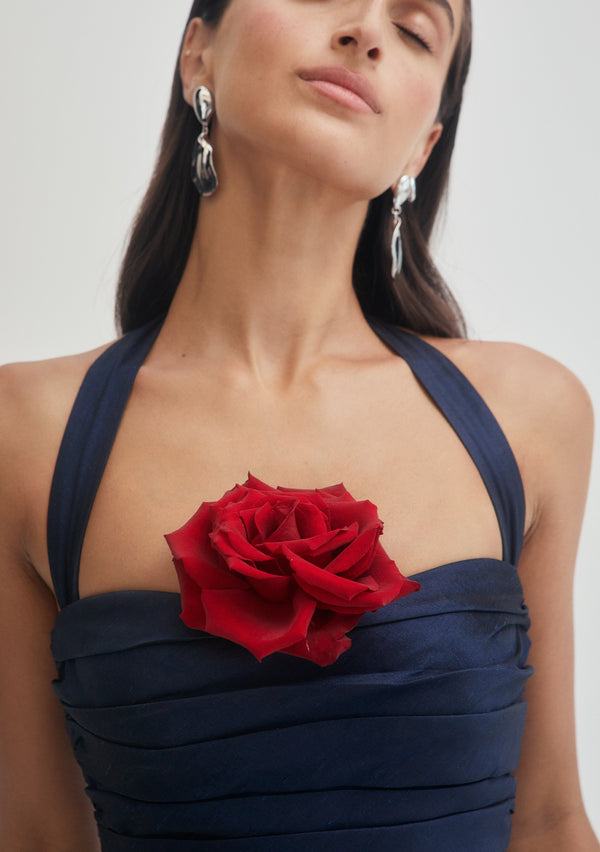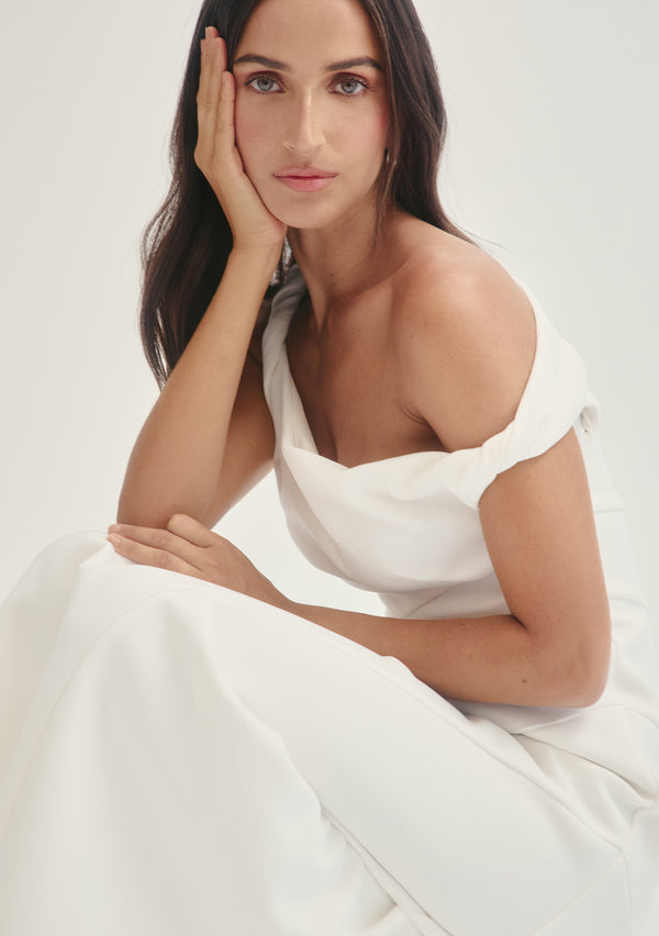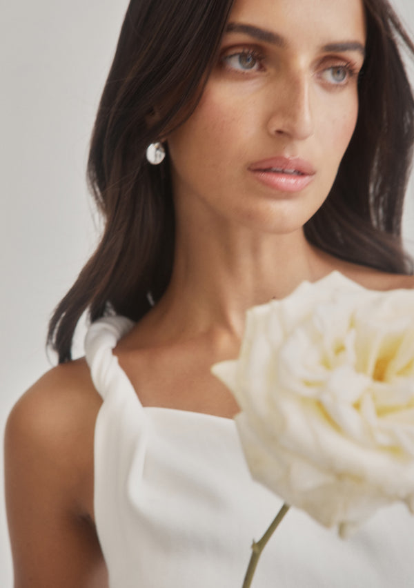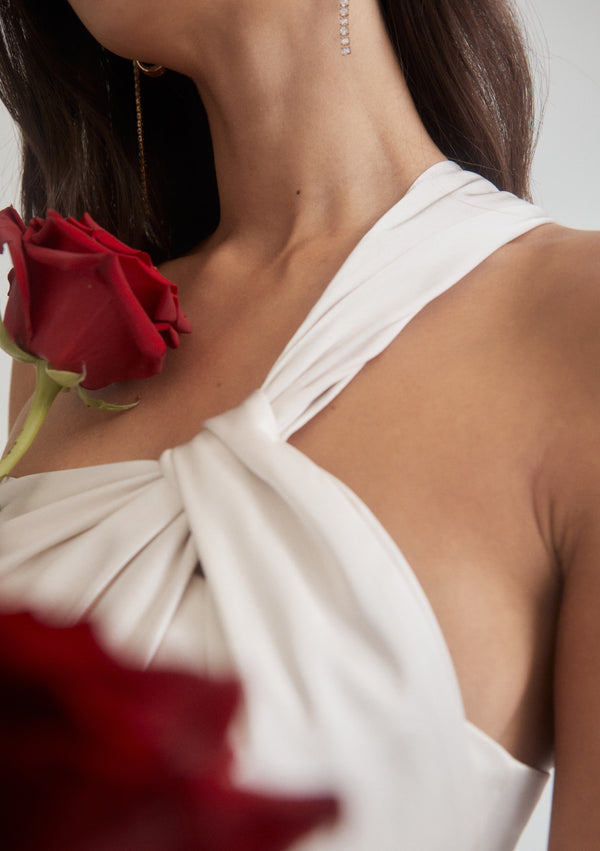 Designed to honour the shape of the female form, each piece has been carefully constructed to have an innate movement to them; perfectly draped and wrapped to fit. Poetic silhouettes and refined lines blend timeless elegance with a modern verve, creating moments of structure amongst an otherwise delicate femininity.