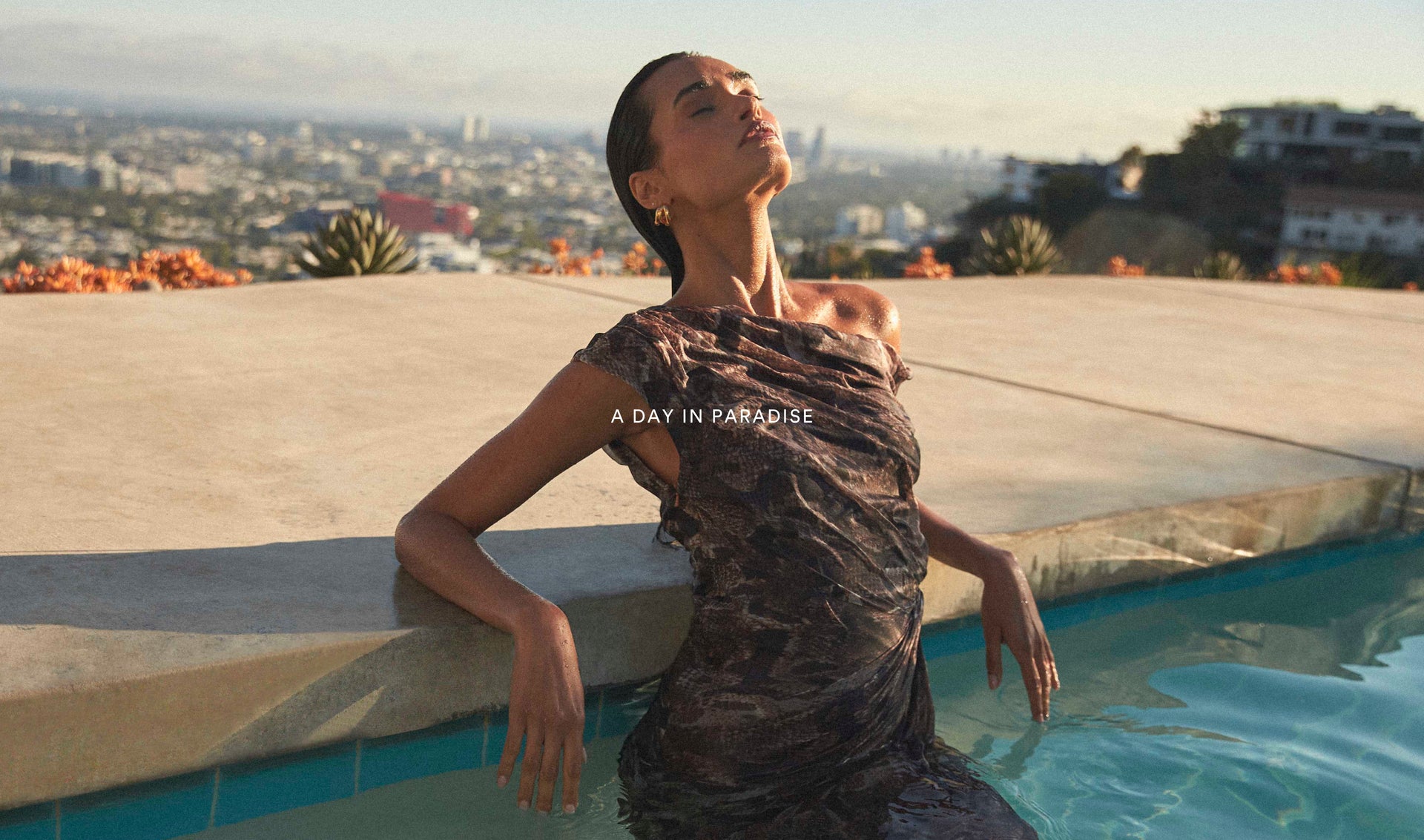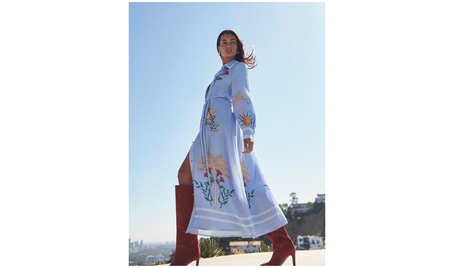 Captured at the top of the Hollywood Hills, this collection finds inspiration in the days full of spontaneity and heady excitement. Standing strong under an azure sky, our muse is magnetic, confident and mesmerising - the embodiment of a day in paradise.