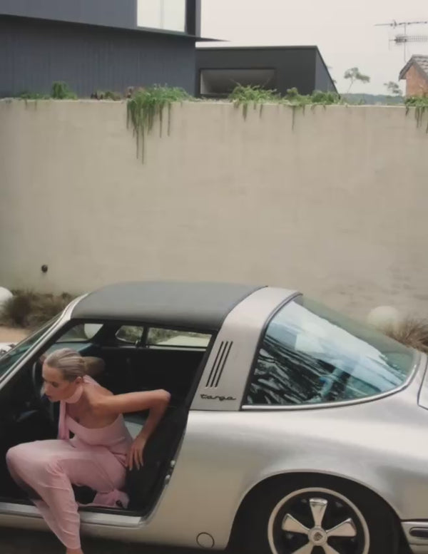 Windows down, volume up. A sweep of chrome glides through the streets of suburbia, wheels smooth against the asphalt. The sun hangs low, casting gold across manicured lawns. She’s behind the wheel, hair sleek, she's effortlessly magnetic. Her world set to its own rhythm.